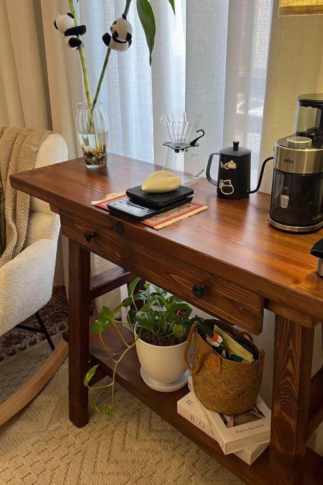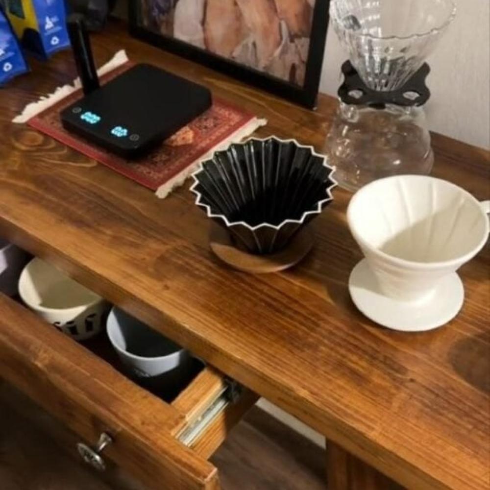 - مساحة عملية وواسعة: مثالية لترتيب ماكينة القهوة، الأكواب، البن، والإكسسوارات.
